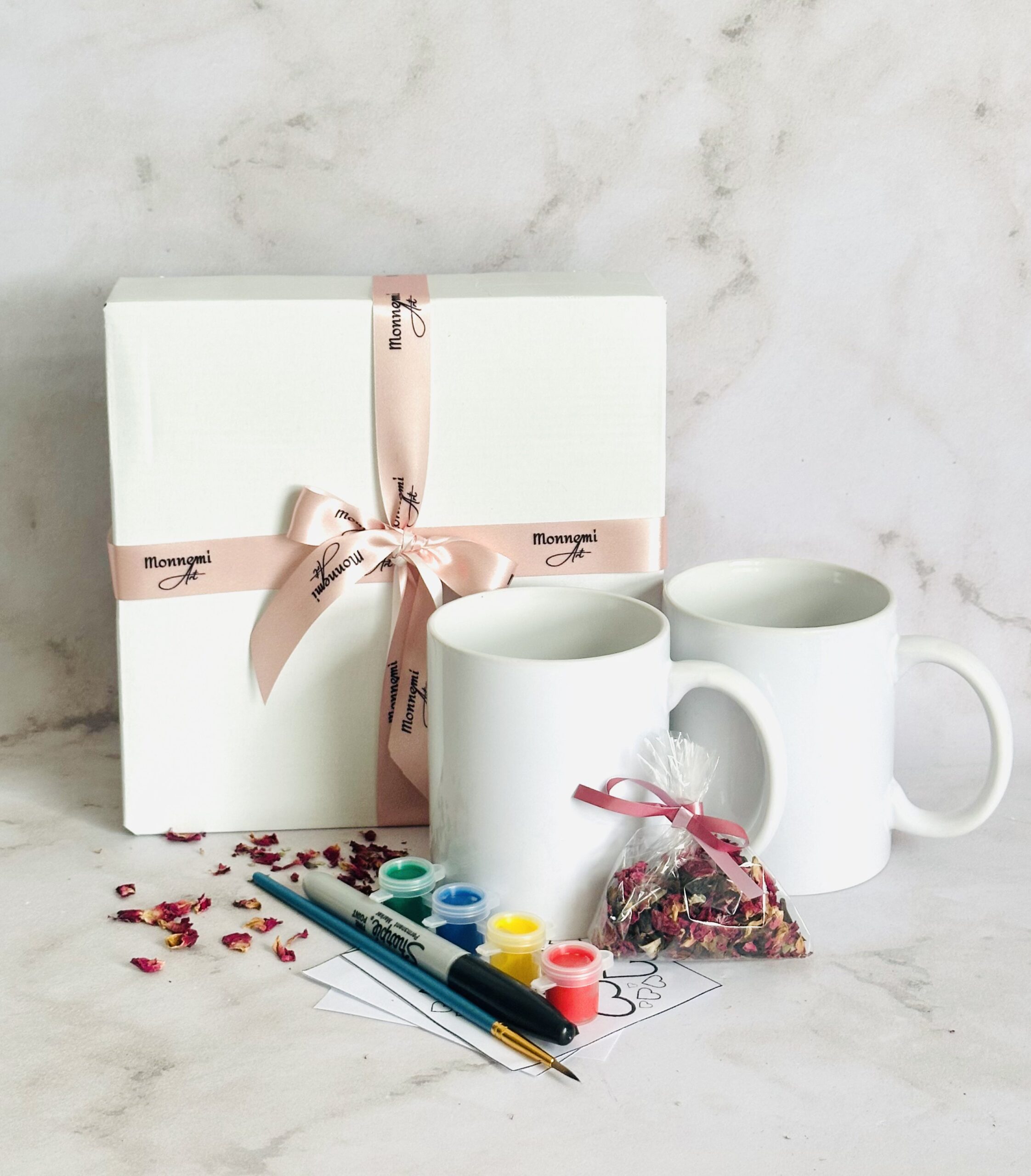 Art Box Podwójny zestaw Kubków ceramicznych to kreatywny zestaw do stworzenia własnoręcznie pomalowanych kubków do kawy lub herbaty czy wody. Zestaw idealnie sprawdzi się jako prezent dla rodziców lub jako personalizowana praktyczna rzecz w domu.