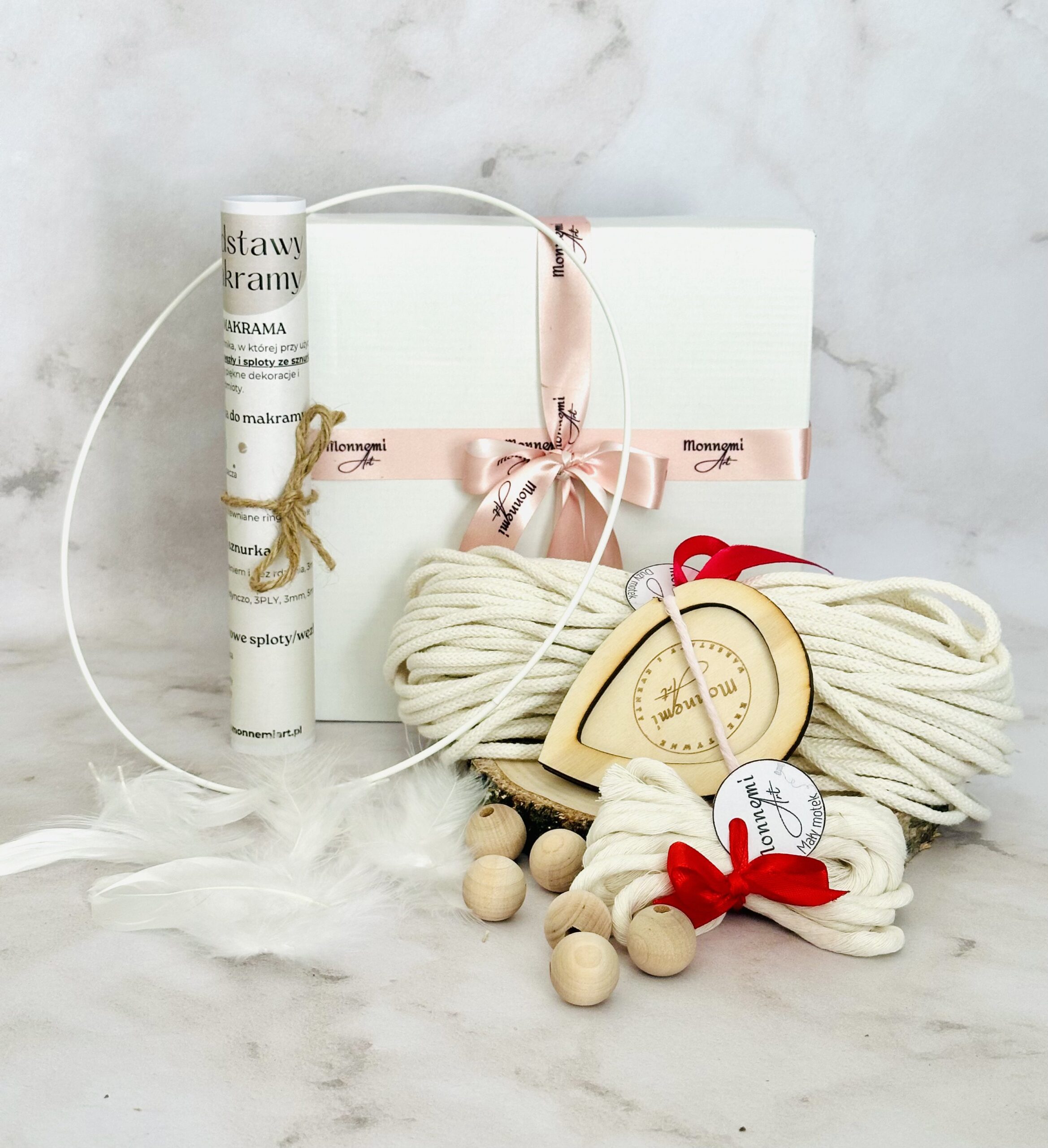 Art Box Makrama Łapacz Snów to kreatywny zestaw do nauki splotów sznurka metodą  Makramy przy jednoczesnym tworzeniu pięknej i efektownej dekoracji ściany w postaci Łapacza Snów.