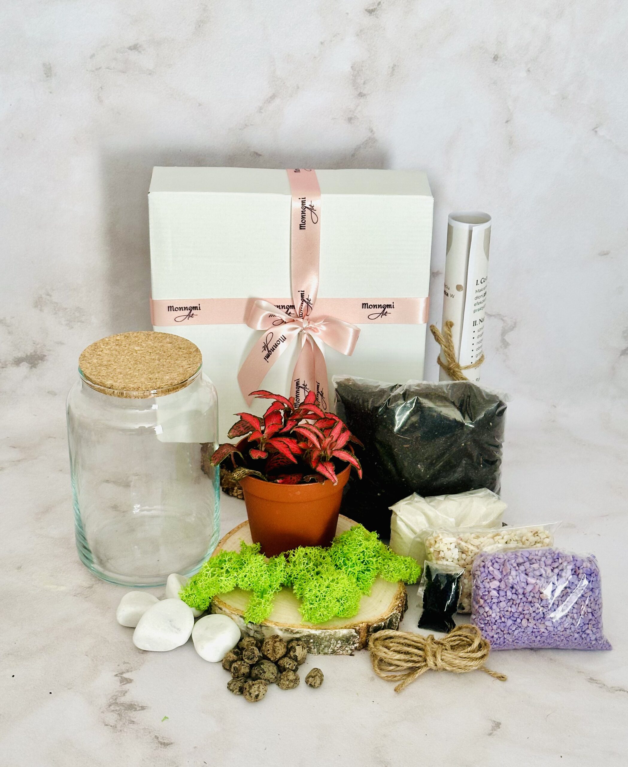 Zanurz się w fascynujący świat roślinności i stwórz własny, las w szkle! Nasz zestaw zawiera wszystkie niezbędne elementy do stworzenia unikalnego miniaturowego ekosystemu, w tym żywą roślinę, podłoże, kolorowe żwirki, kamienie dekoracyjne i instrukcję. To idealna okazja, by nauczyć się tworzyć zamknięte ekosystemy, rozwijać zdolności manualne i posiadać własnoręcznie wykonany Las w Szkle.