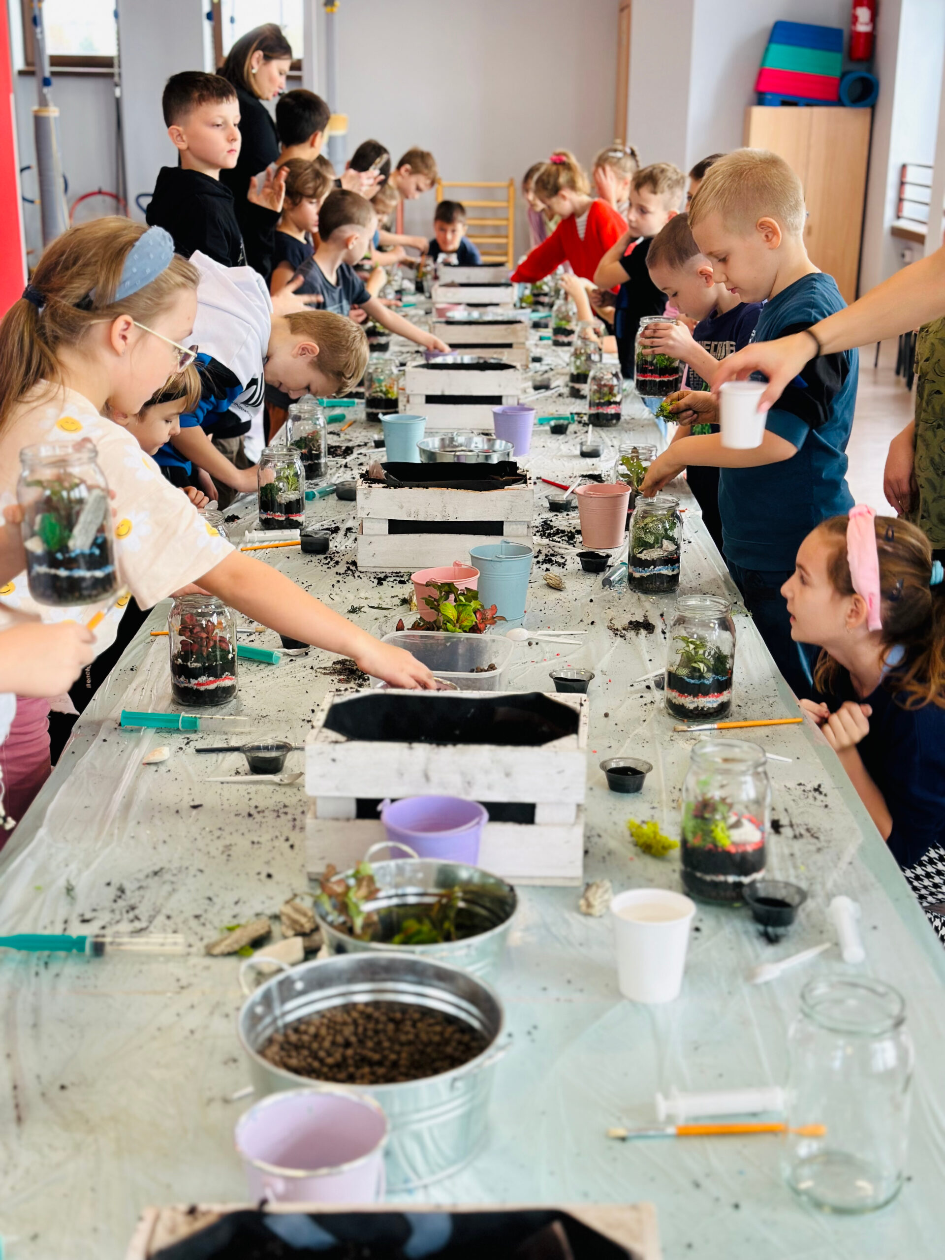 Zapraszamy dzieci na fascynujący warsztat, gdzie tworzenie staje się odkrywaniem przyrody. Nasz warsztat „Tworzenia Lasu  w Szkle” to nie tylko zabawa, to także edukacja i podróż w świat natury.