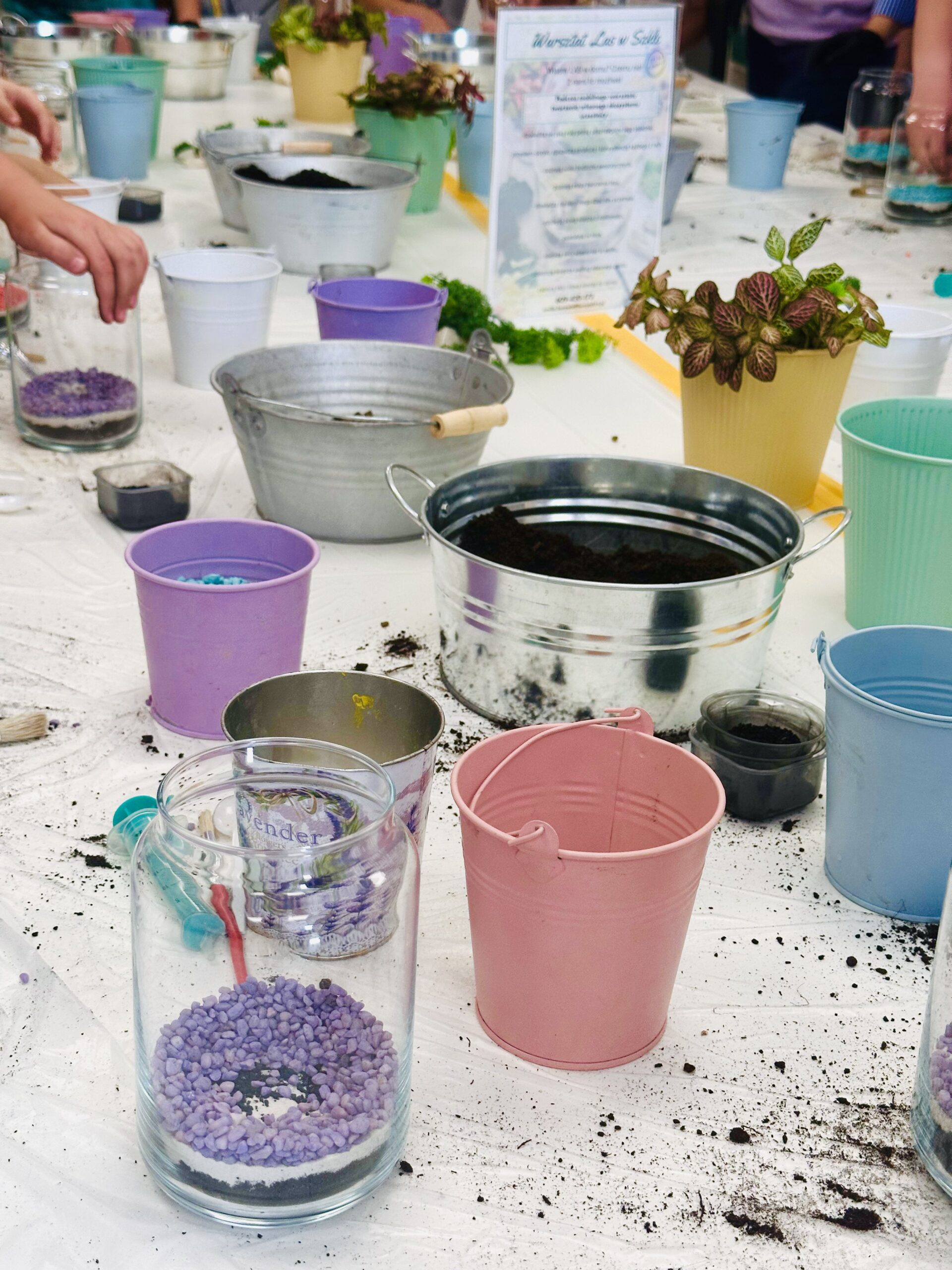 W obecnych czasach dzieci otacza mnóstwo bodźców, powodujących często rozdrażnienie, nerwowość i nadpobudliwość, aby emocje mogły się trochę wyciszyć i uspokoić pomocny jest kontakt z naturą i różnymi strukturami wpływającymi na sensorykę najmłodszych. Warsztat Las w szkle świetnie wpisuje się w ten rodzaj terapii. Kontakt fizyczny z roślinami, delikatnymi jak i tymi kłującymi, z ziemią, różnymi frakcjami piasku i żwiru dadzą dzieciom wielu doznań sensorycznych.