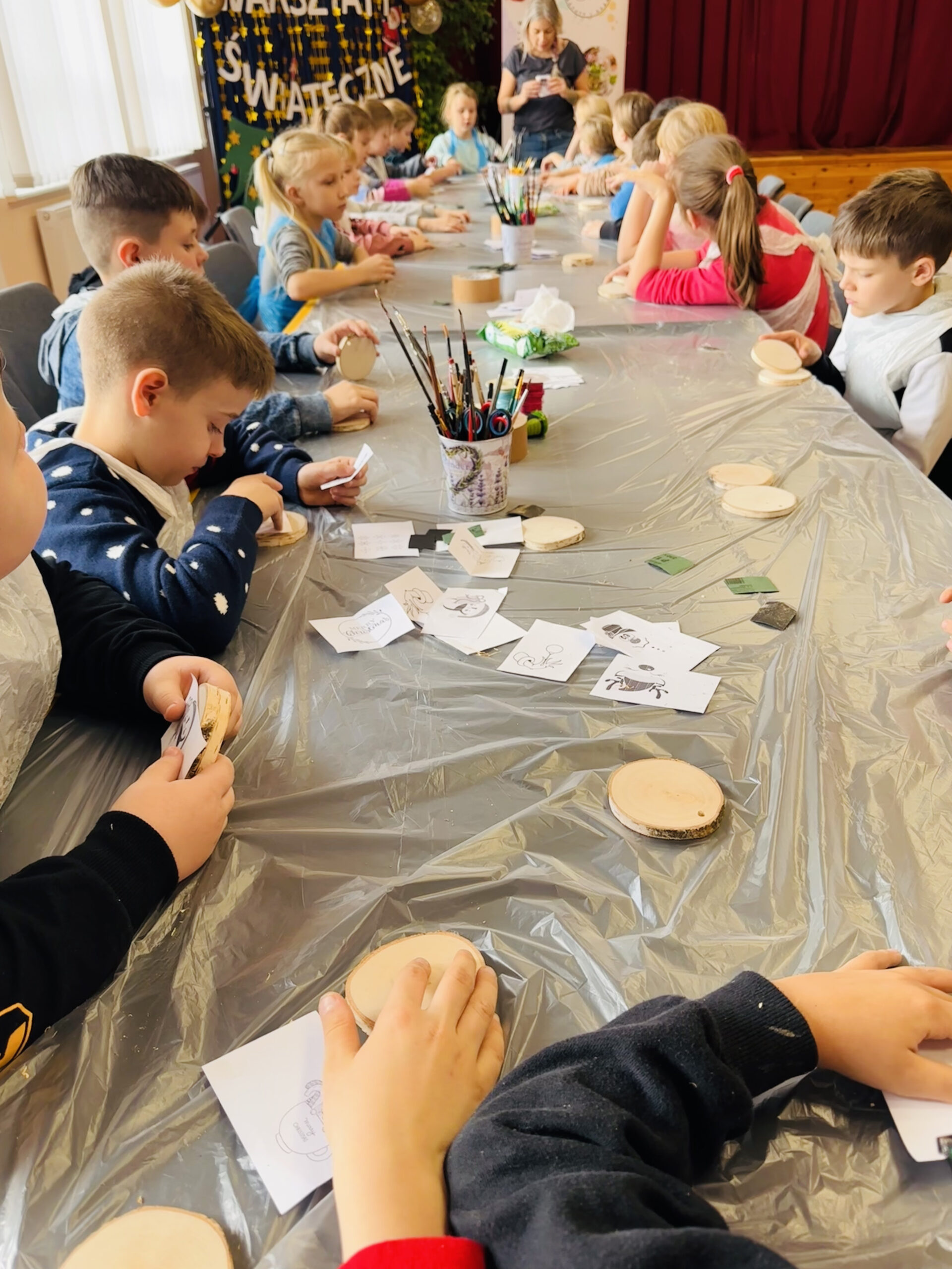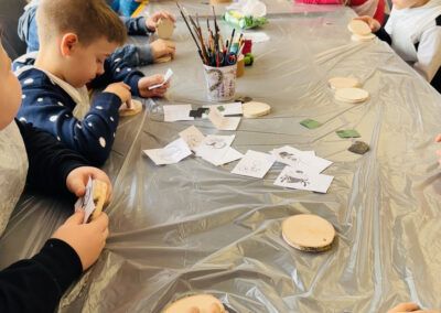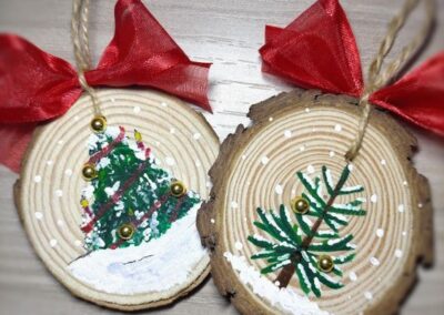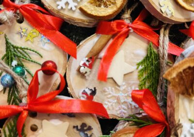 Wszystkie niezbędne materiały, w tym plastry drewna, farby, dodatki świąteczne,  a także pomoc doświadczonego instruktora, są dostarczane przez Nas. Warsztaty są dostosowane do różnych grup wiekowych i ich zdolności.