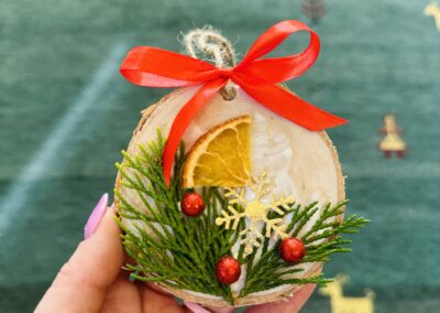 • Otrzymają ekologiczne i gotowe do udekorowania plastry drewna techniką malowaną lub dekoracyjną z użyciem świątecznych gadżetów. Rodzaj warsztatu wybrany przez organizatora.