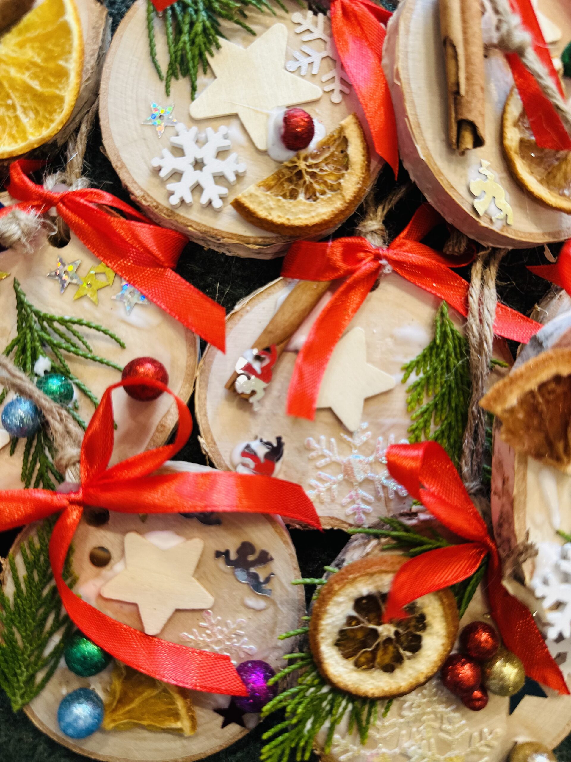 • Każdy uczestnik samodzielnie tworzy po 3 eko-ozdoby na choinkę