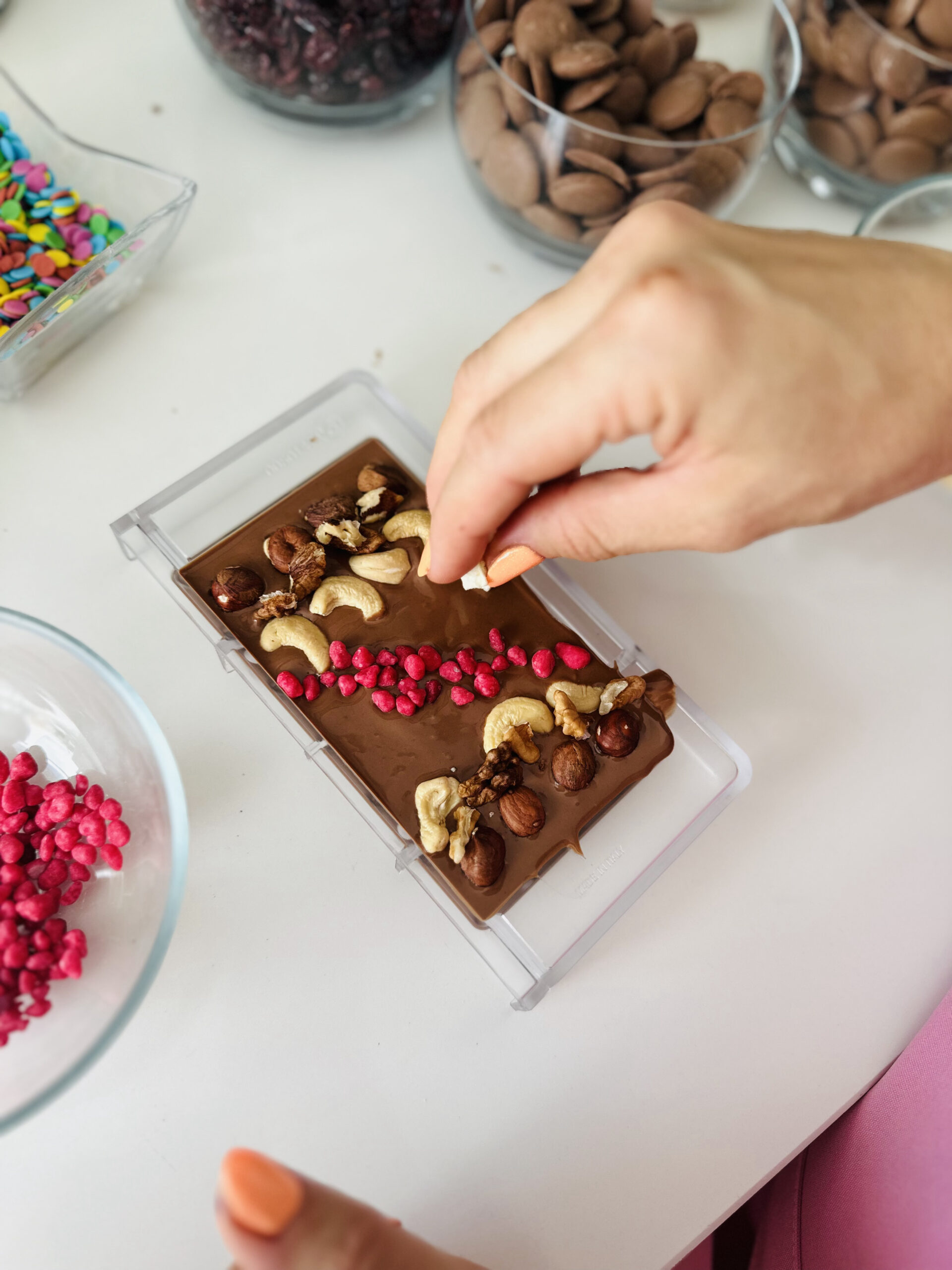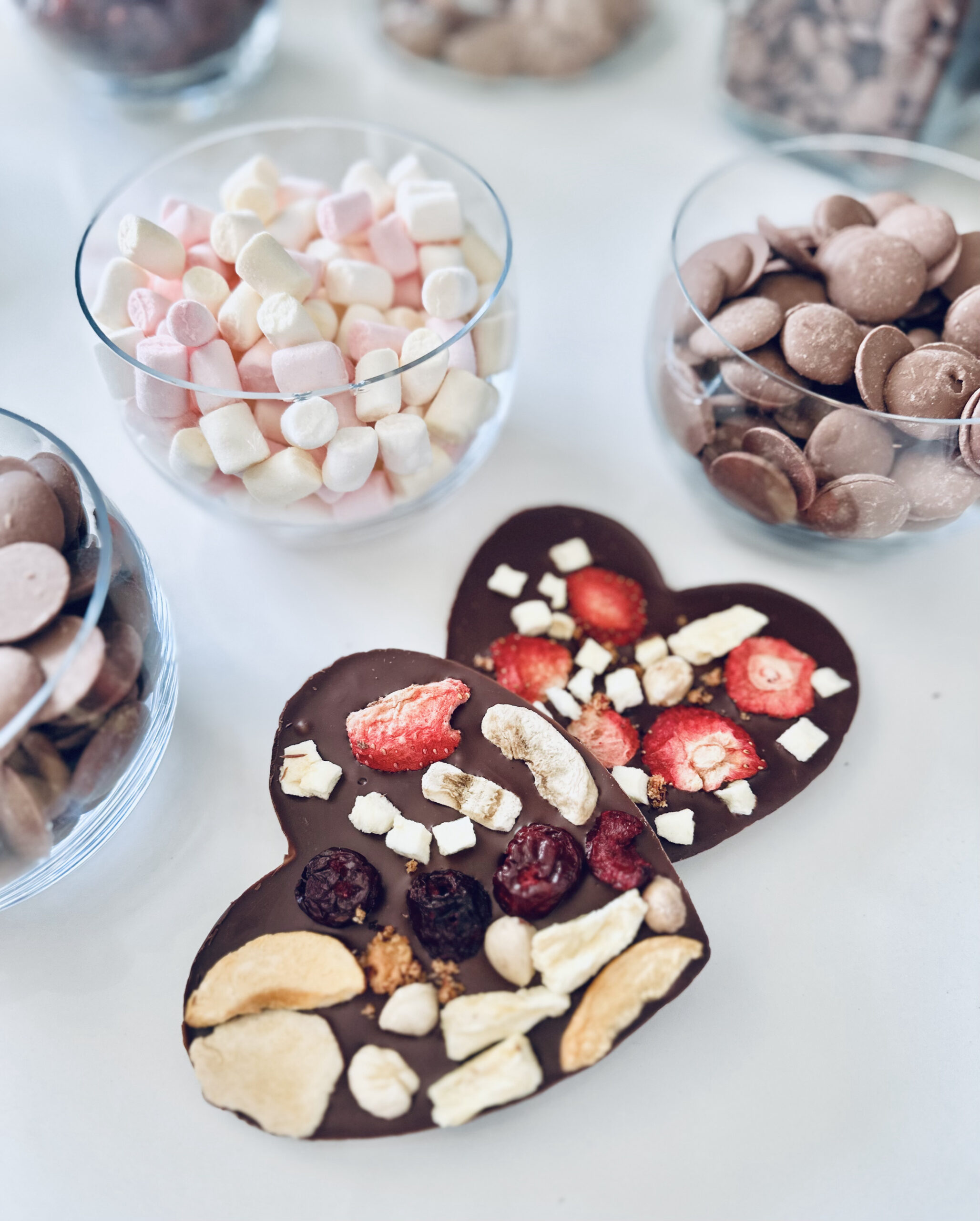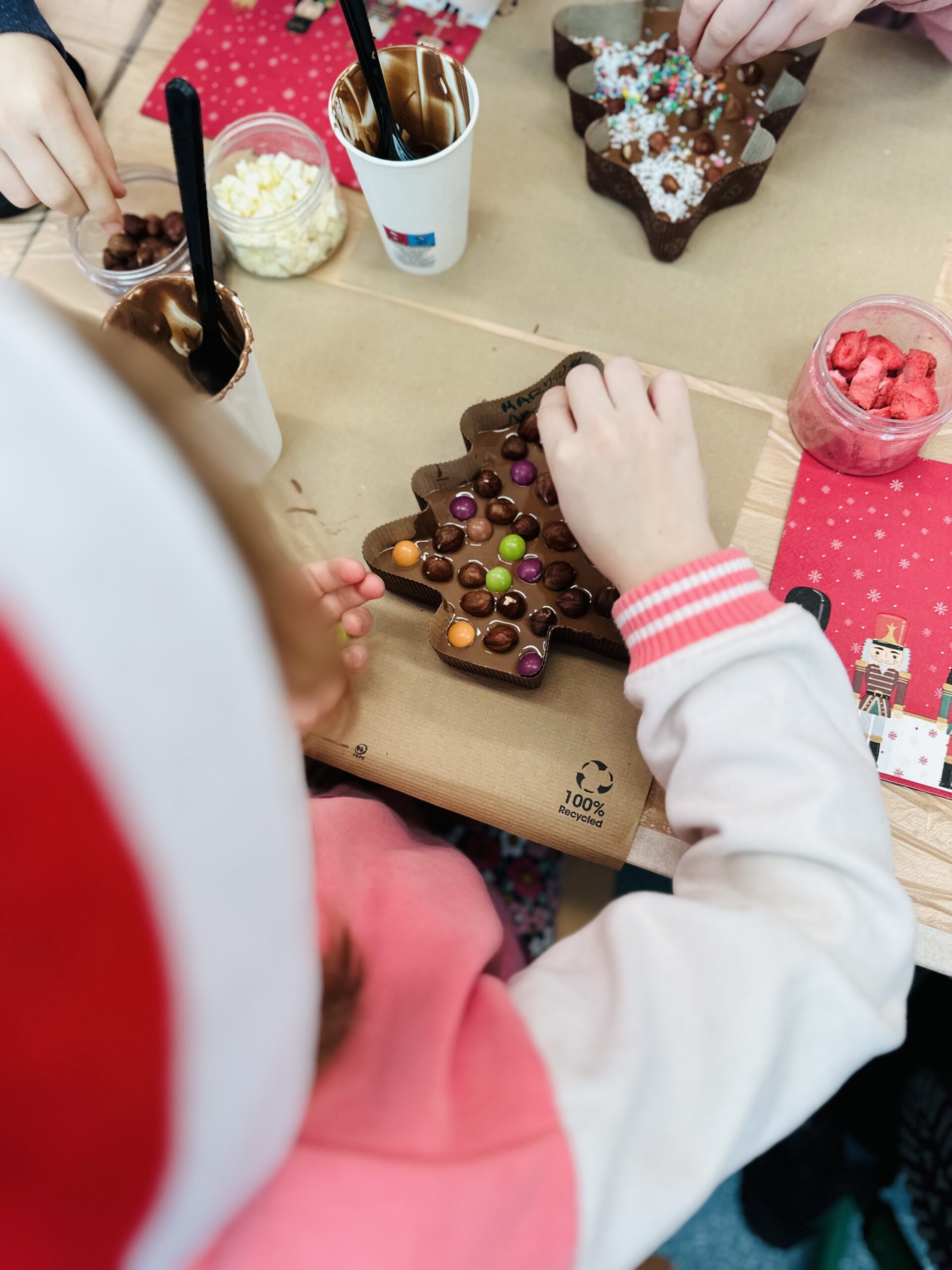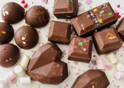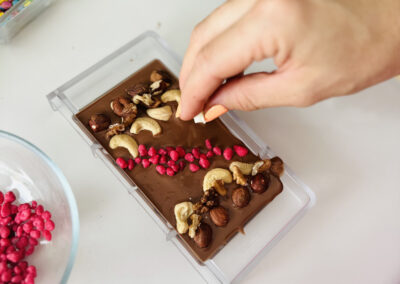 Warsztat na każdą okazję: Na dzień rodziny, dziadków czy walentynki tworzymy serca. Na Wielkanoc wielkanocne pisanki , na Święta Bożego narodzenia choinki lub gwiazdki. Warsztat świetnie sprawdza się również bez okazji jako słodka atrakcja, wtedy tworzymy prostokątne tabliczki czekolady lub inne kształty.