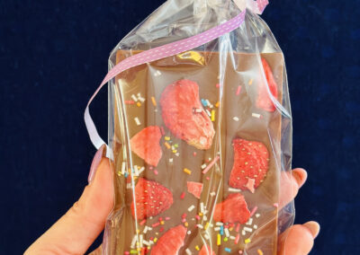 Zapraszamy dzieci do magicznego świata czekolady- naszych słodkich warsztatów „CzekoladoweLOVE”. To nie tylko kreatywna zabawa, to prawdziwa podróż przez zmysły i nauka o czekoladzie od ziarenka do tabliczki. Dzieci rozpoczynają od odkrywania procesu powstawania czekolady, w tym dotykania i próbowania ziaren kakao, poznawania ich zapachu i smaku. Oprócz poznania ziarna kakaowca dzieci będą miały możliwość dotknąć i zobaczyć jak wygląda prawdziwy owoc kakaowca. To nauka, która rozbudza ciekawość i zmysły. Następnie przechodzimy do praktyki. Dzieci tworzą swoje własne czekoladowe dzieła sztuki, dekorując je według własnych pomysłów używając różnych dodatków od zdrowych liofilizowanych owoców po różne orzechy, precelki i kolorowe posypki czy draże. Każda tabliczka czekolady to wyjątkowe indywidualne dzieło. Podczas warsztatów dzieci mogą eksperymentować z różnymi smakami i dodatkami, dowiadując się, jakie połączenia smakowe są najsmaczniejsze. To nie tylko zabawa, to nauka i wspaniałe doświadczenie smakowe. Na koniec każdy uczestnik zapakuje swoją tabliczkę czekolady i zabierze do domu lub zje na miejscu 🙂