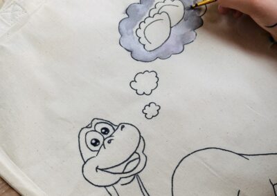Nasz instruktor opowie o sposobach barwienia różnych tkanin, prezentując przy tym kilka swoich dzieł. Przedstawi różne metody malowania nie tylko farbami, ale też pisakami, za pomocą pędzli, pieczątek i szablonów. Sposób prowadzenia warsztatu dopasowujemy do grupy wiekowej uczestników. Dla młodszych dzieci 2-4 lata skupiamy się na malowaniu za pomocą szablonu. Dla dzieci starszych od 5 lat pokazujemy jak można namalować mało skomplikowane wzory, tak aby dziecko samo bez pomocy dorosłego mogło stworzyć np. ulubioną postać z bajek.